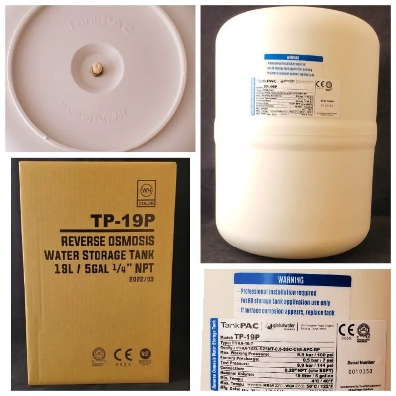 این مخزن بهترین و استانداردترین مخزن در بازار ایران و جهان می باشد . تنها مخزن واقعا آنتی باکتریال و قابل اعتماد از هر نظر . کاملا وارداتی و اورجینال می باشد . اگر به دنبال یک مخزن خوب و عالی هستید ، بی شک باید مخزن تانک پک را انتخاب کنید . نمونه های تقلبی نیز در بازار دارد که خوشبختانه تشخیص آن آسان است و کافی است که به زیر مخزن نگاهی بیندازید و در صورتی که عبارت MADE IN TAIWAN و TANKPAC به صورت حک شده وجود داشته باشد ، اورجینال است . این مدل مخزن در 3 سایز 19 لیتر ، 16 لیتر و 12 لیتر(3 و 4 و 5 گالن ) در بازار وجود دارد که معمولا برای استفاده خانگی سایز بزرگ آن یعنی همان 19 لیتر مورد استفاده قرار میگیرد . حجم مفید و آبگیری آن معمولا نصف حجم کلی آن است